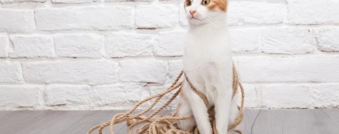 Mačky môžu ľahko náhodne prehltnúť lano, ktoré môže uviaznuť v hrdle, žalúdku a črevách. Zväzky priadze sú tiež potenciálne nebezpečné, pretože dlhé lano sa môže omotať okolo tela mačky, spodnej časti jazyka a dokonca aj okolo krku, čo môže viesť k uduseniu.