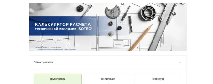 Stačí vybrať typ izolovaného zariadenia (potrubie, ventilácia, nádrž), nastaviť jeho základné parametre, určiť typ izolácie a podľa akých kritérií sa bude výpočet vykonávať. Systém určí požadovanú hrúbku vrstvy, navrhne optimálne pomocné upevňovacie prvky na jej inštaláciu, uvedie očakávanú povrchovú teplotu a približné tepelné straty.Čo poskytuje: