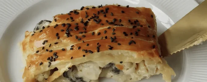 Stránka KathyCooks sa podelila o recept, ktorý premení každý večer na teplý, domáci a chutný: koláč z lístkového cesta s kuracím mäsom, hubami a syrom. Je taký chutný, že všetci budú pri stole rýchlejšie, ako ich stihnete zavolať.